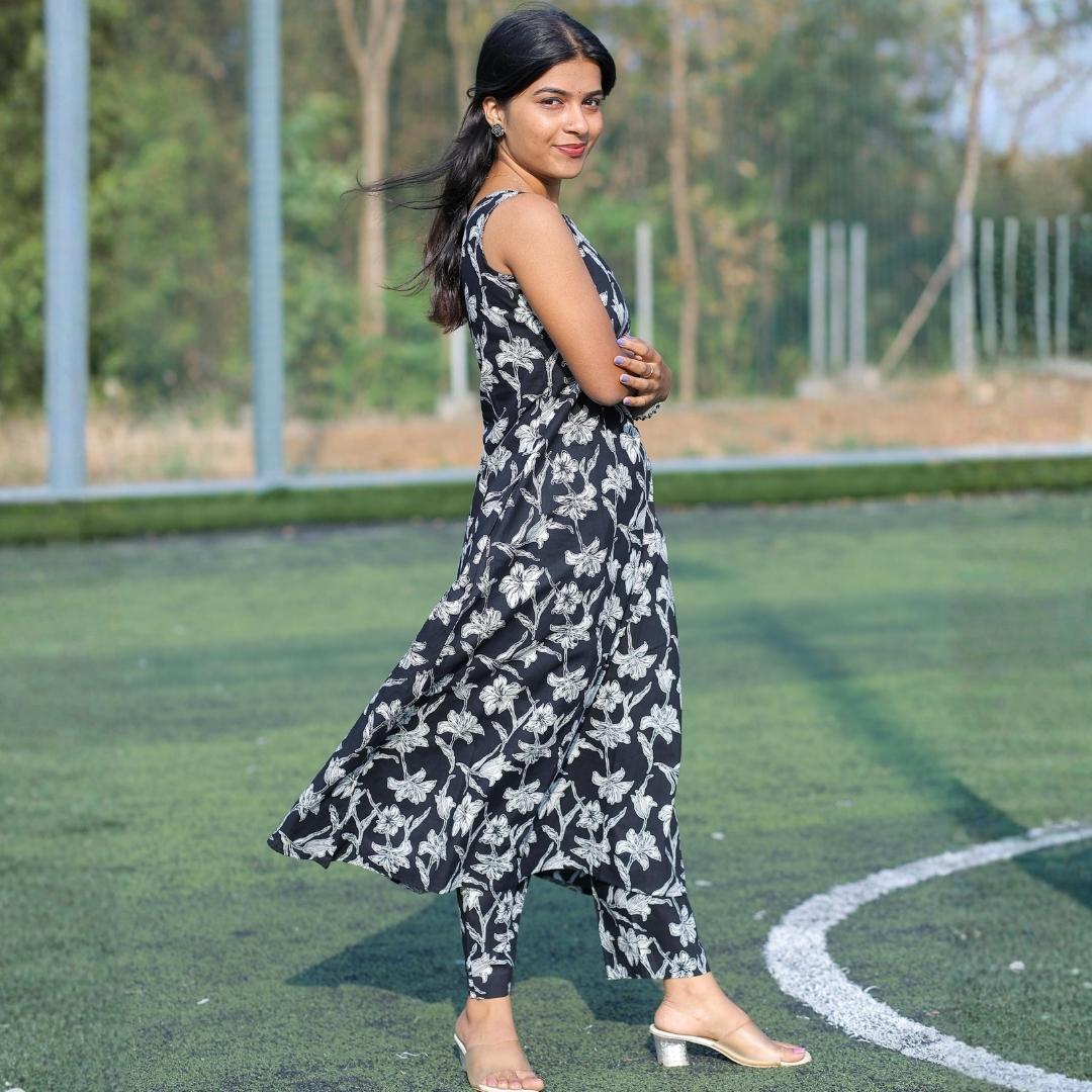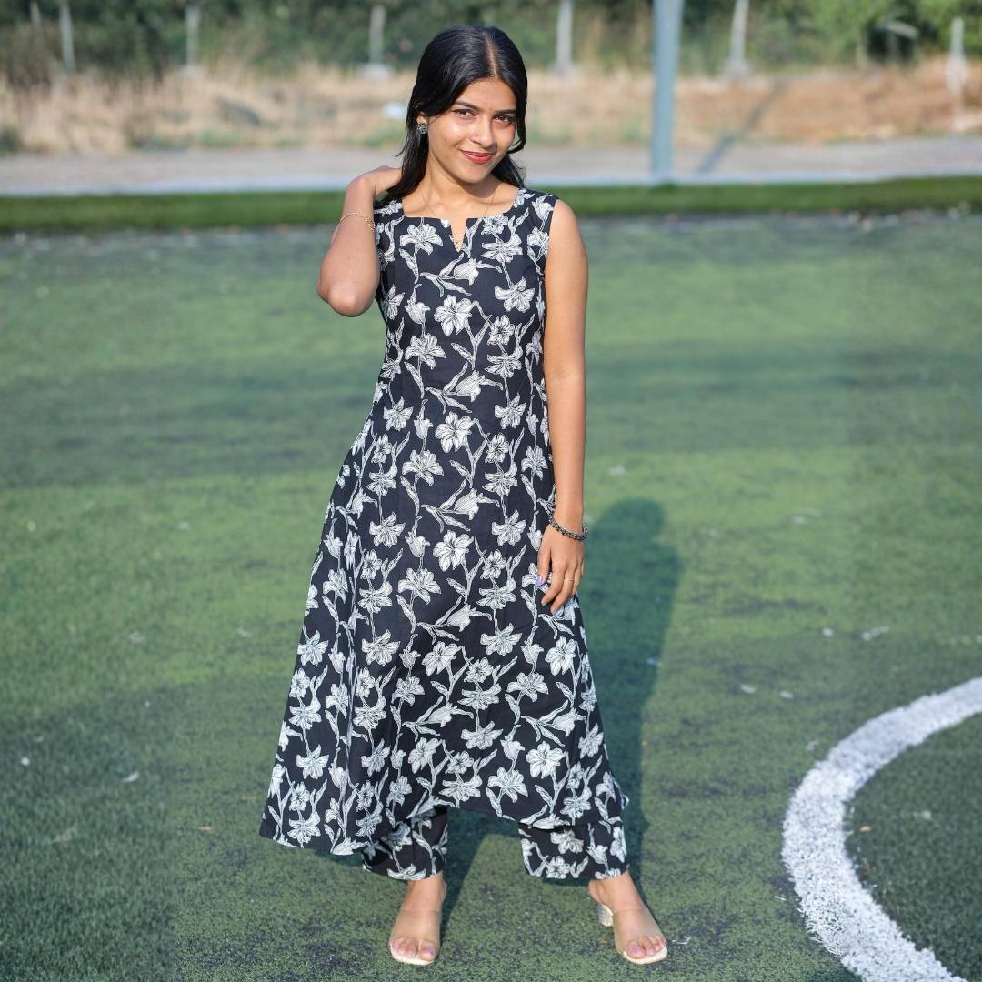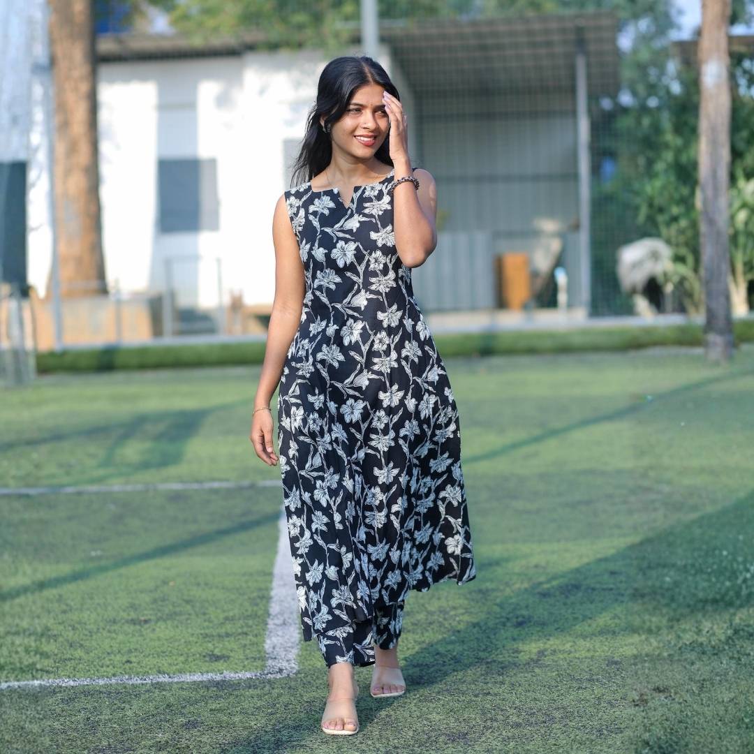 This stylish printed long top is designed for everyday comfort with a touch of elegance. Featuring a flattering 44-inch length, it offers a graceful silhouette that suits casual outings as well as relaxed occasions. The top comes with both sleeveless and 3⁄4th sleeve options, allowing you to choose according to your style preference.